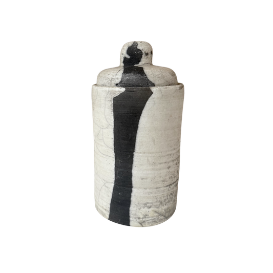 POT MET DEKSEL | KERAMIEK | ANTRACIET | ECRU | VINTAGE